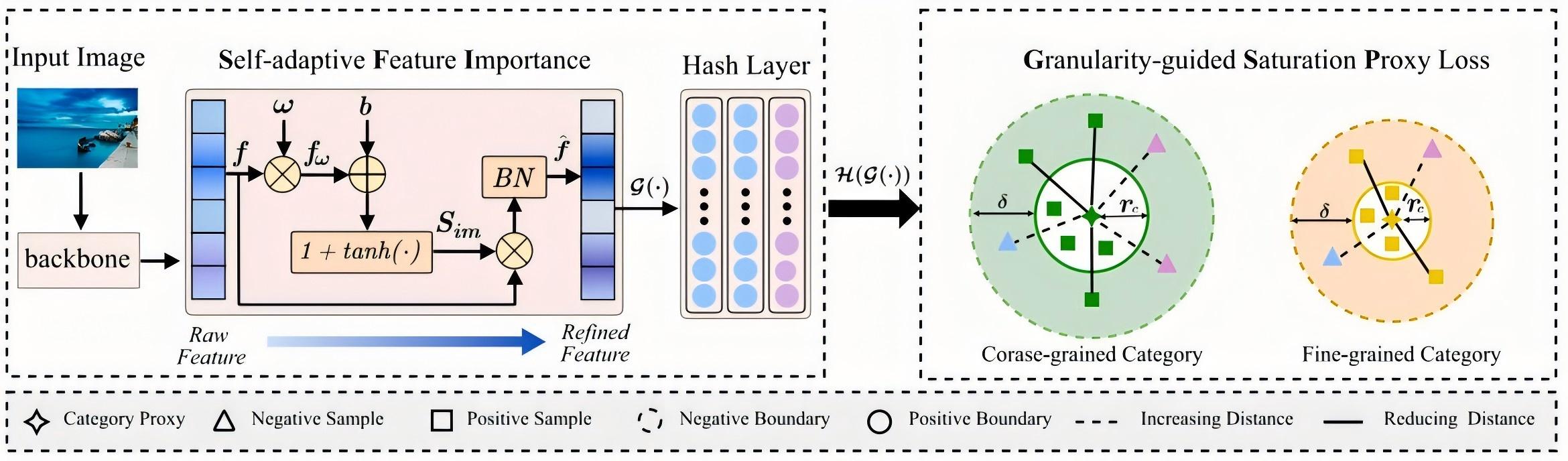 深度监督哈希是大规模图像检索的主流技术,但现有方法忽视类别粒度差异,且无法有效过滤背景干扰。针对这些问题,团队提出GSPH方法,通过引入粒度引导饱和代理损失和自适应特征重要性组件,有效提升模型性能,经四个基准数据集的实验验证,该方法性能优于现有主流方法。