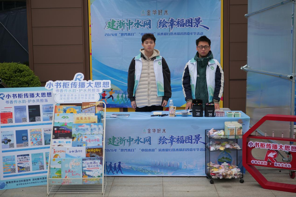 3月22日,正值第34届世界水日暨第39届中国水周之际,以“建浙中水网 绘幸福图景”为主题的2026年金华市滨水毅行暨水情科普嘉年华活动在金华市三江里广场启幕。学校“阿郎卫士”实践队百余名师生助力节水宣传活动,为“建浙中水网”注入青春力量。
