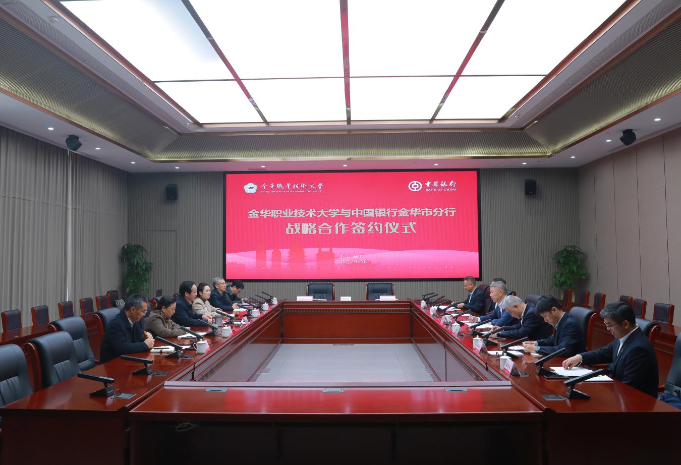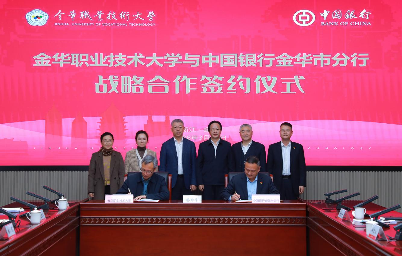 3月25日上午,金华职业技术大学与中国银行金华市分行银校战略合作签约仪式在明学会议室举行。中国银行浙江省分行党委书记王寒冰、公司金融与投资银行部总经理郭新元、金华市分行行长叶其江,金职大党委书记王振洪,副校长卢小珍及中国银行和金职大相关负责人等出席仪式。签约仪式由金职大副校长陈夙主持。
